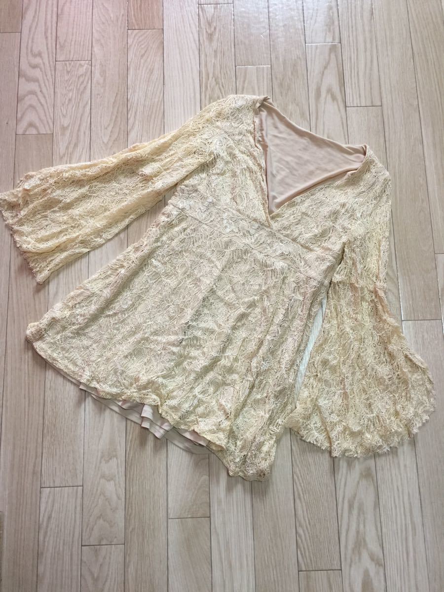 - S160/リップサービス/ベージュ/レース柄/長袖/カットソー/