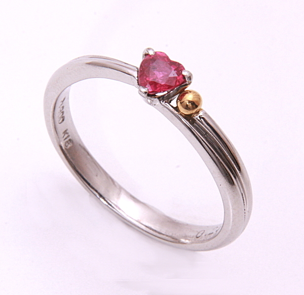 - 《質屋出品》Pt900/k18★ハートシェイプ天然ルビー0.26ctリング★C-4781