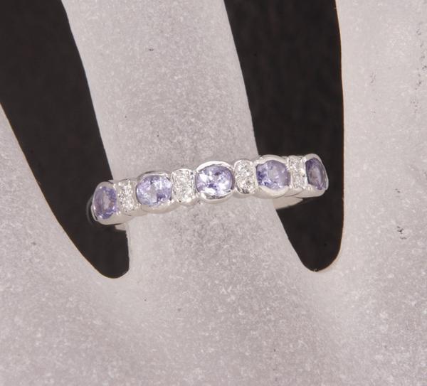 - 《質屋出品》Pt900★天然タンザナイト5石のデザインリング★k-3419