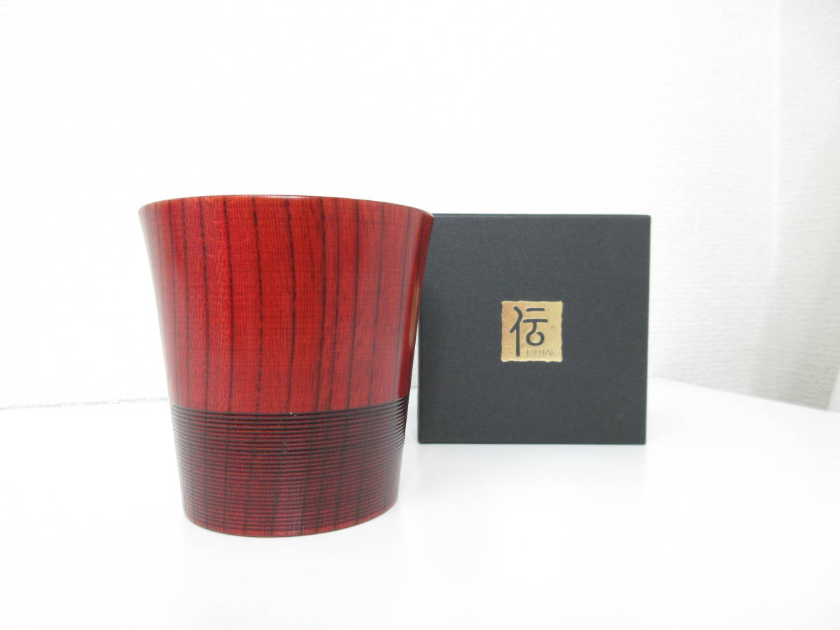 > ◆伝 山中塗 ロックカップ 朱 東出漆器 天然木 漆器 漆 コップ 伝統 工芸品 国産 150ml 未使用品 管理2009 B-14