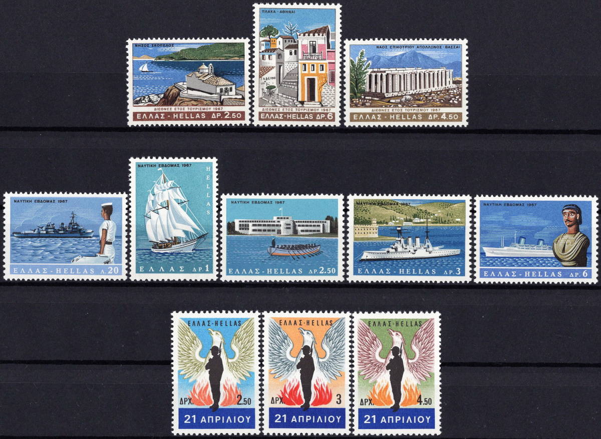 - ★1967年 ギリシャ - 「国際観光の年」3種完+「海上の週」5種完+「4.21革命」3種完 未使用(MNH)(SC#893-903)★VF-39