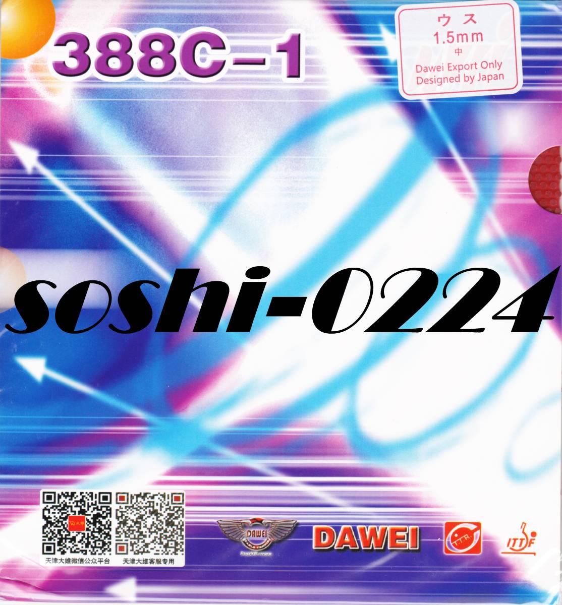 - DAWEI/大維★388C-1★赤/薄~中1.5mm★回転や威力やスピードよりも変化で相手のミスを誘う