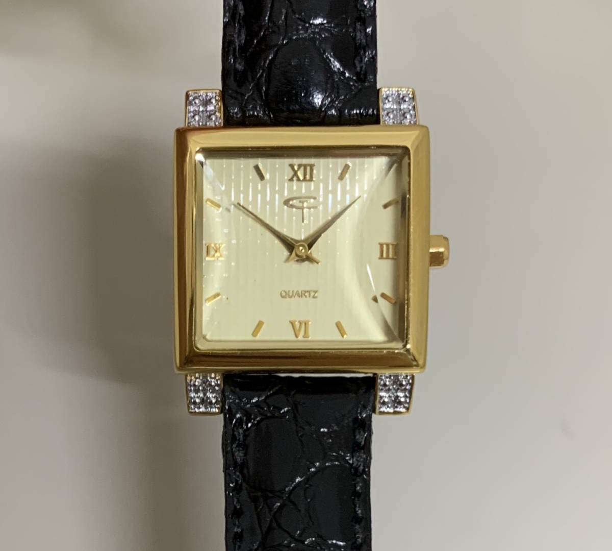 - 【訳あり商品】レザーベルトウォッチ スクエアレディース GD/BK