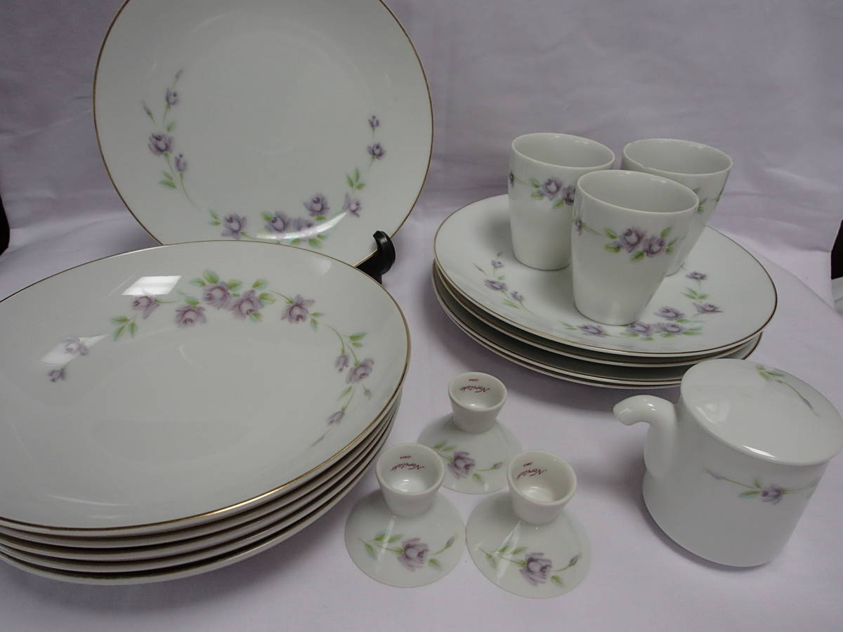 > ★ノリタケ★オールド★大皿・大深皿・お湯のみ・お猪口・お醤油さし★N印★月桂樹★NIPPON TOKI KAISYA★ピンクの裏印