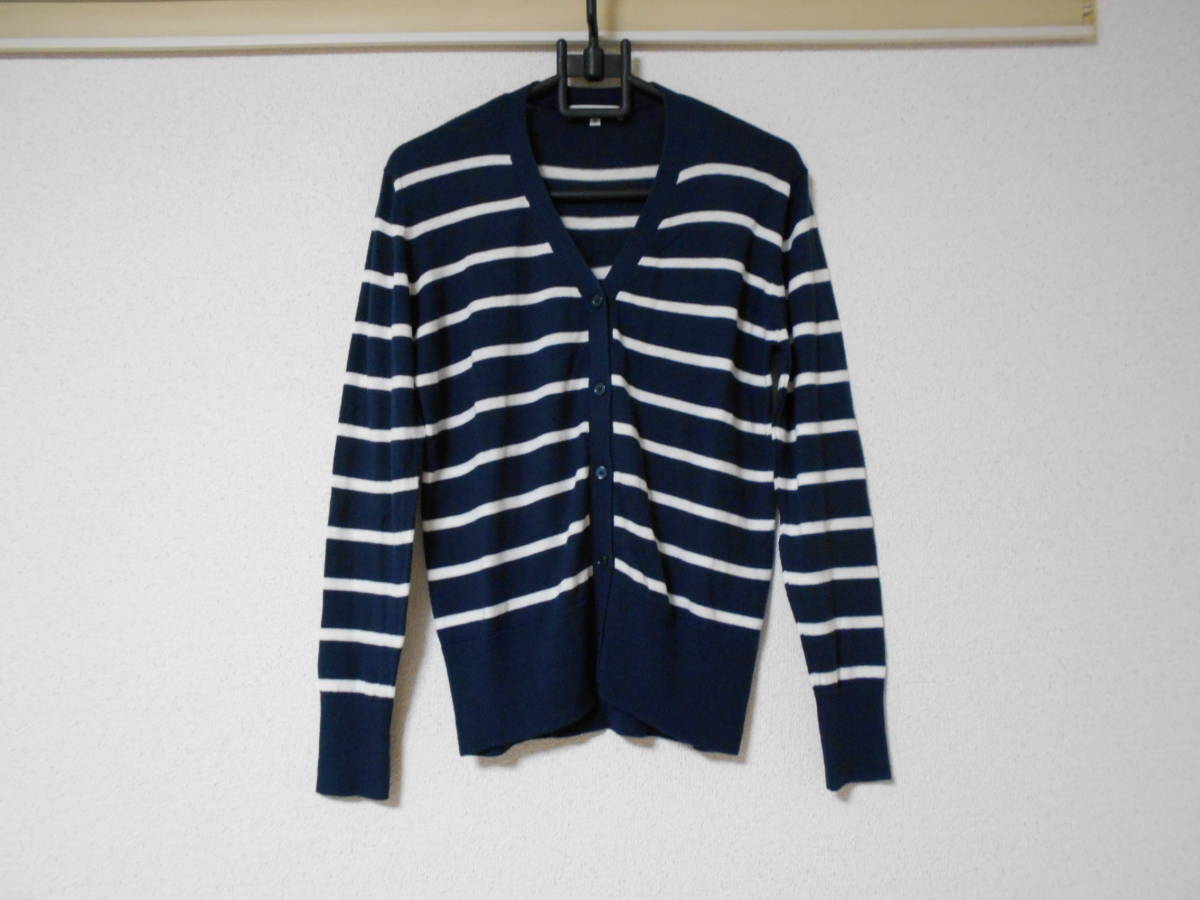 - AMERICAN HOLICアメリカンホリック☆ネイビー紺×白のボーダー柄☆柔らか♪薄手のカーディガン☆楽ちん♪伸縮ニット素材☆Mサイズ☆美品