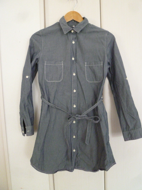 - 無印良品計画○デニム調ウエストリボンコットンシャツワンピースM/ナチュラル系長袖○OP1112