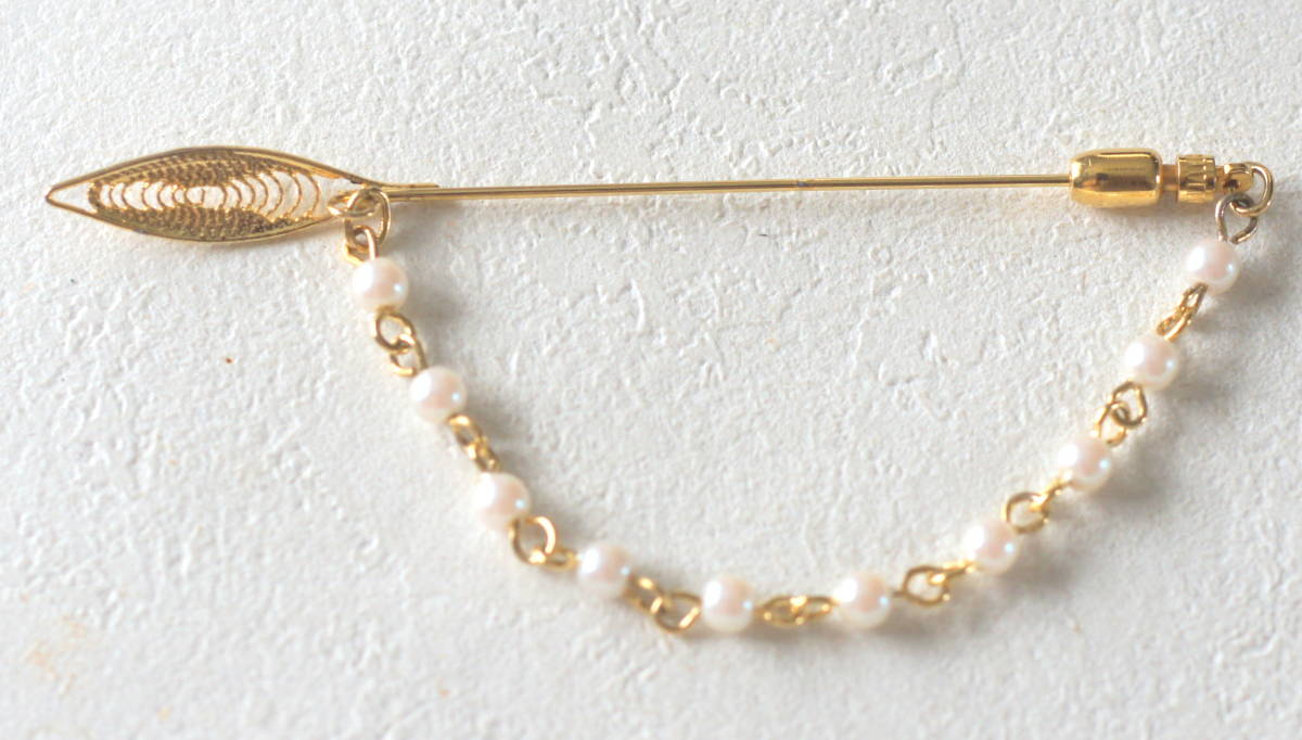 - 葉っぱとパールのゴールドカラーのピンブローチ