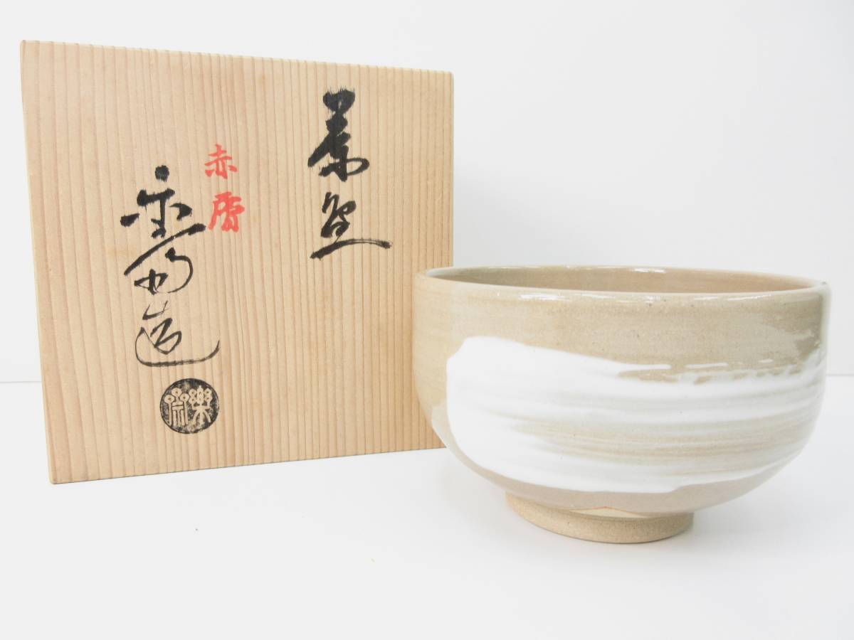 - 未使用品▼尾西 楽斎 樂齋 赤膚焼 茶碗 茶 陶芸 管理2012 Y-7