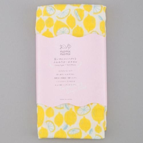 - ★軽くて小さくたためるガーゼのロングフェイスタオル《レモン》