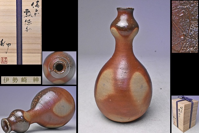 > 伊勢崎紳 ★ 備前 瓢徳利 ★ 共箱 栞 ★父:伊勢崎満 ★ 美しい造形に景色の良い逸品 ★ 一輪挿しにも ★検 人間国宝 伊勢崎淳 伊勢崎 陽山