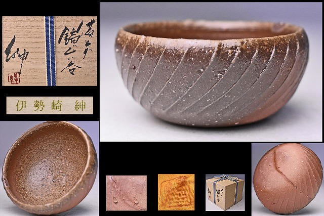 > 伊勢崎紳 ★ 備前 鎬ぐい呑 ★ 共箱 共布 栞 ★ 父:伊勢崎満 ★ 造形の見事な逸品 ★ 酒器 ★検 人間国宝 伊勢崎淳 伊勢崎 陽山