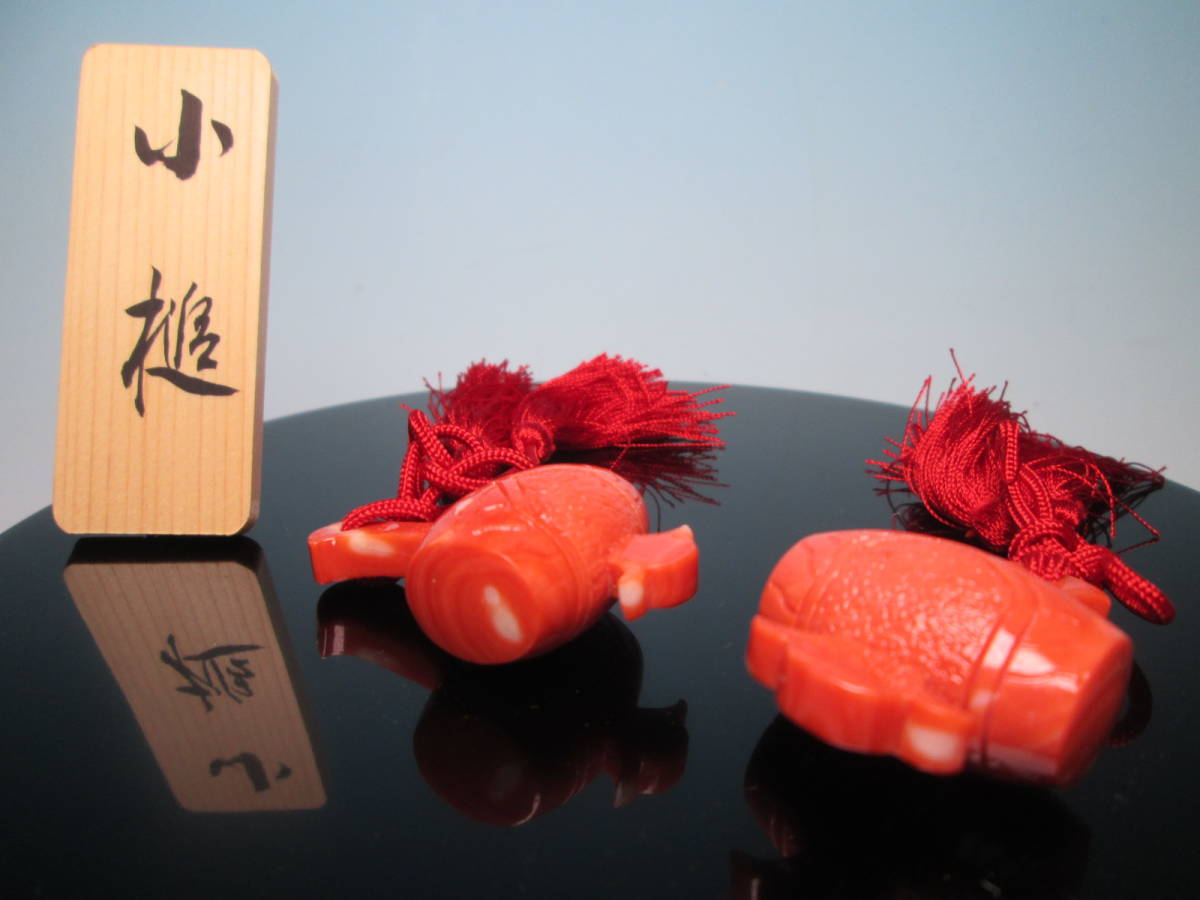 - ☆本珊瑚 綺麗な赤珊瑚の小槌 2 床飾り 輪島塗台・木箱付 美品 吉祥 お正月飾り