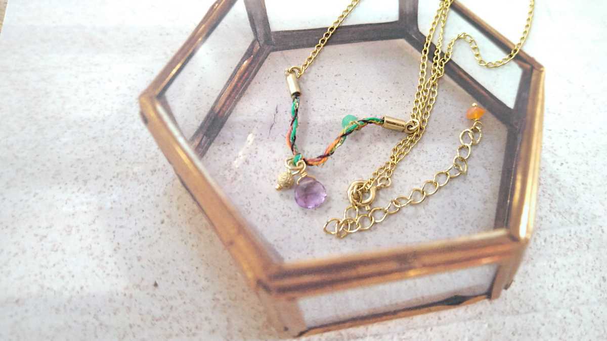 - □アートな印象□小さなクリアビジュー×ゴールドカラーチェーンのネックレス□