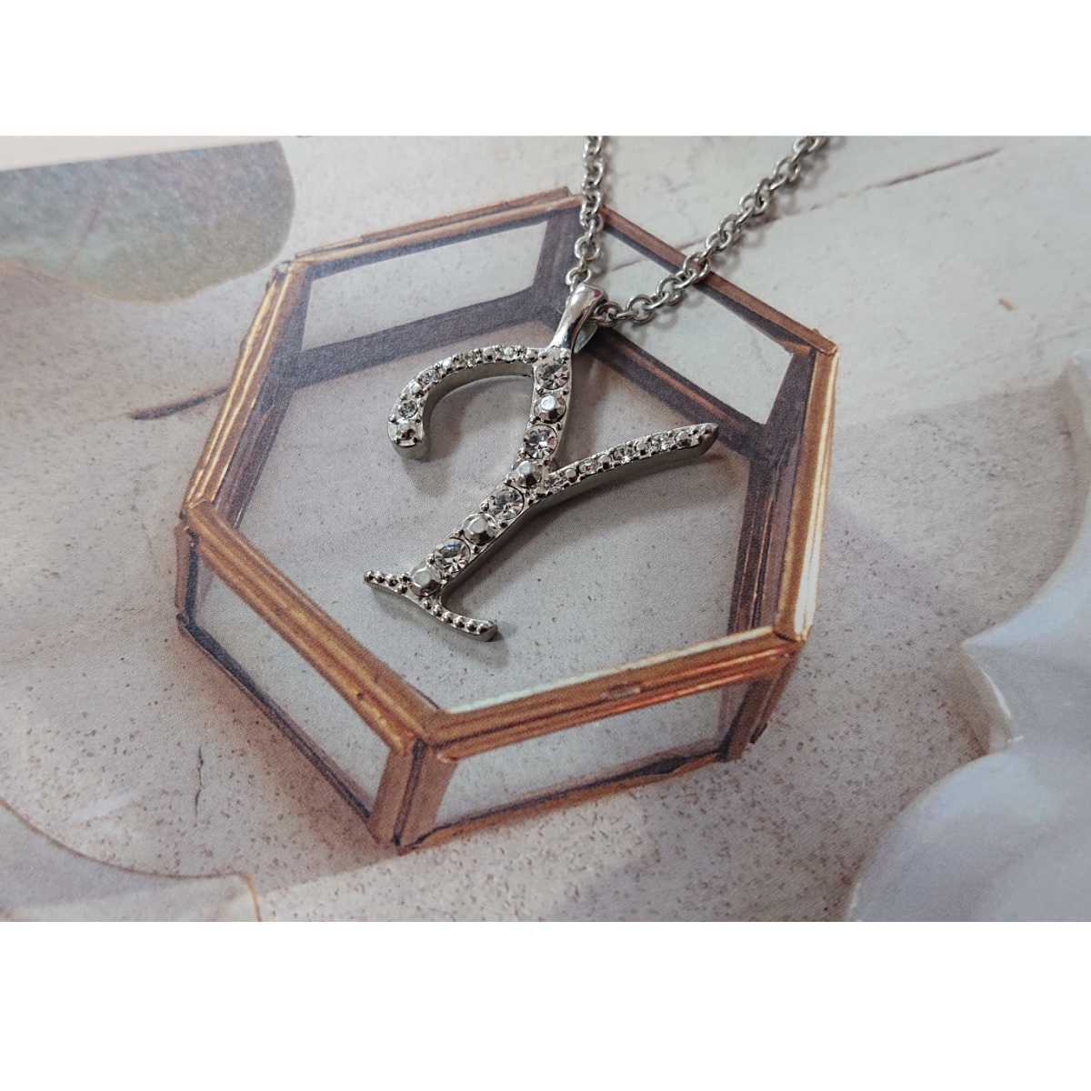 - □英字Y×ラインストーン・ネックレス□シルバーカラー□