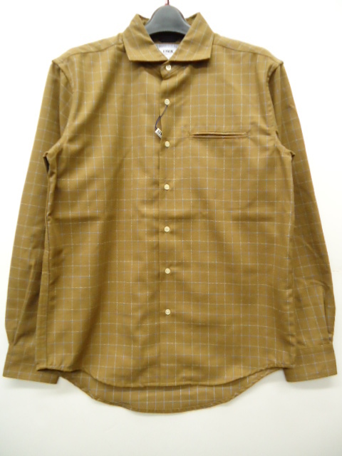 > 【KCM】som-43-M★新品★【EDWIN/エドウィン】メンズ ワイドカラー 長袖チェックシャツ M 112.ブラウン [ET2120]