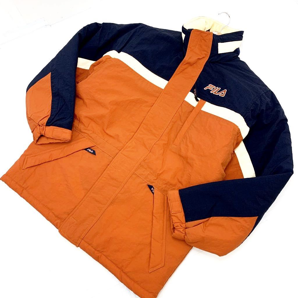 - 90s ☆ フィラ ☆ FILA 古着MIXに抜群のレトロ感◎ オレンジ × ネイビー 中綿 ジャケット S スポーツMIX ストリート アメカジ Y2K■B167