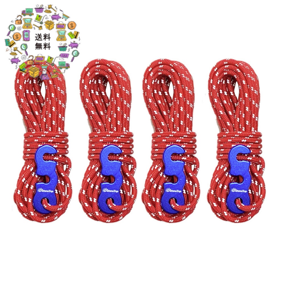 - 【レッド】テントロープ パラコード 3mm 4m 4本セット