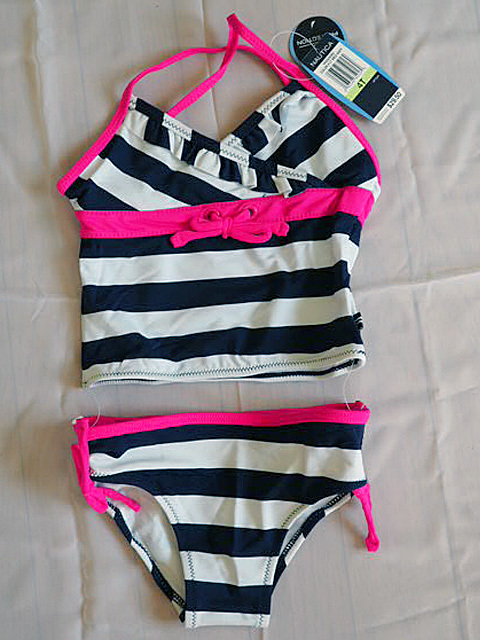 - 新品未使用・キッズ女の子・ビキニタンキニ・ボーダー・4T・0418
