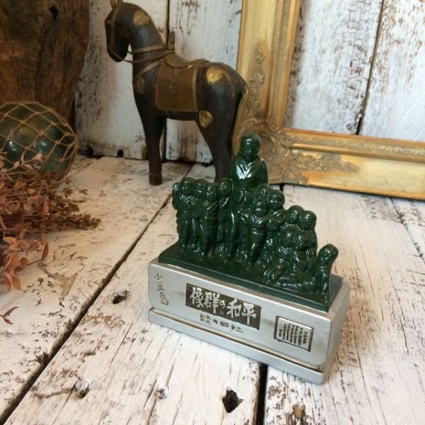- 送料無料 稀少 平和の群像 二十四の瞳 小豆島 古い オブジェ 陶器製 置物 飾り ヴィンテージ ビンテージ 昭和レトロ