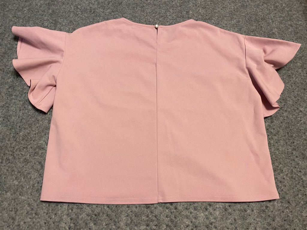 - スモーク ダスティピンク パステルカラー 春半袖フリルトップス ブラウス カットソー チュニック Tシャツ ローズ ペプラム袖 プルオーバー