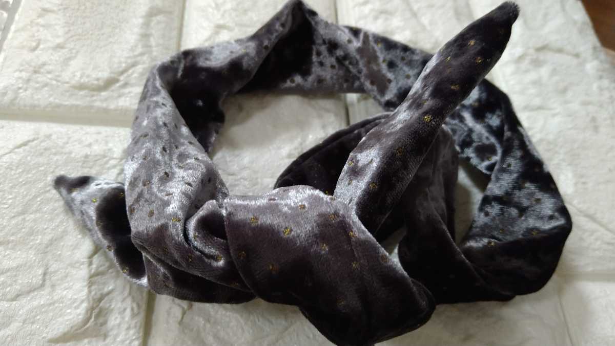 - □ベルベット調・ワイヤー入りヘアバンド□グレー系□水玉柄□