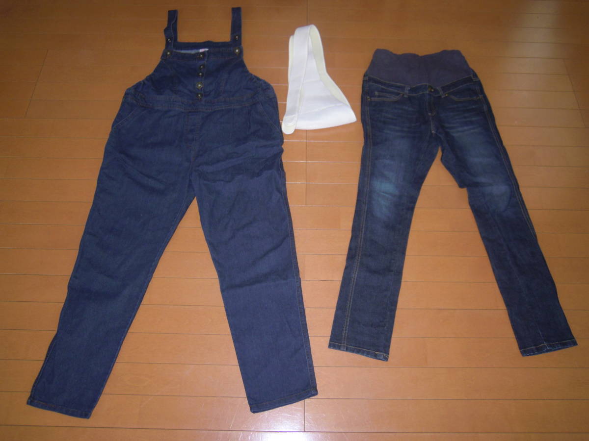 - マタニティー ジーンズ オーバーオール 妊婦帯 セットでどうぞ
