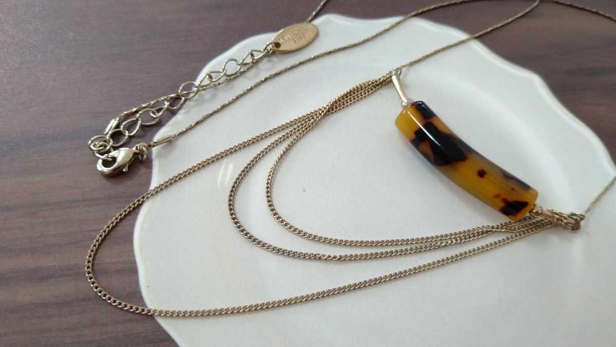 - □NATURAL BEATY BASIC□べっ甲模様×ゴールドカラーチェーン・デザインネックレス□
