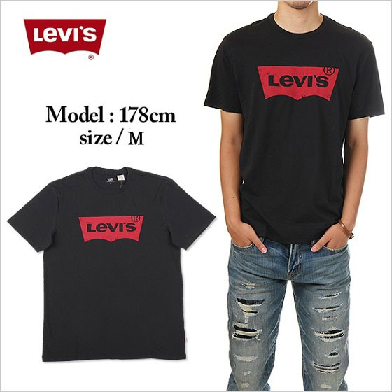 - XLサイズ Levi's リーバイス バットウイング ロゴ Tシャツ LOGO ブラック×レッド 黒 赤 定番 XL ストリート タブ 胸 アメージング 通販 服