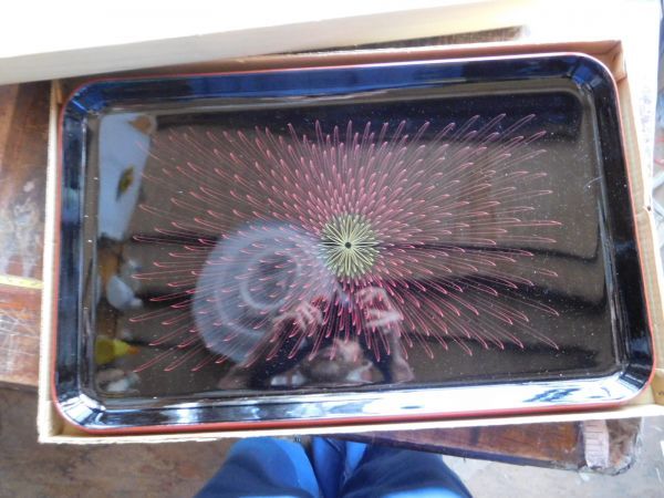 - 高級美術漆器盆 48X30CM 菊花 未使用 ユリヤ樹脂 日本製 made in JAPAN 漆器 箱は劣化のため処分します