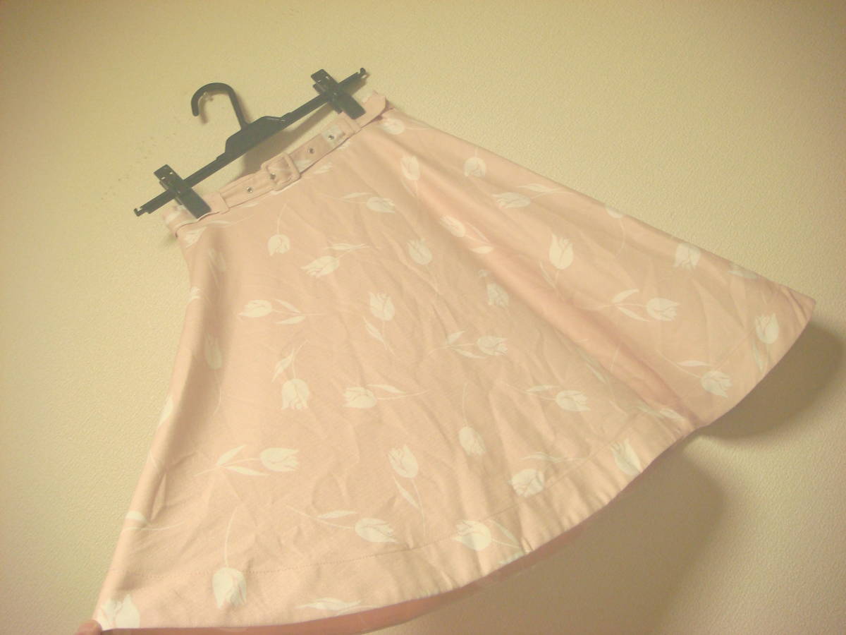 - titty&co. チューリップ柄 ベルト付き たっぷりフレア スカート ピンク 美品