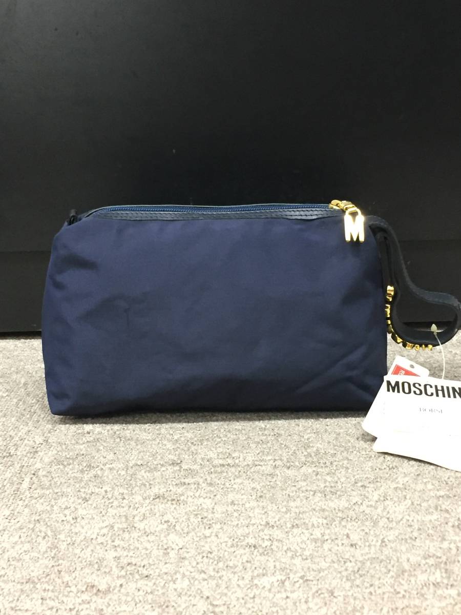 - 新品未使用!格安!MOSCHINO モスキーノ ロゴ金具 ナイロン×レザー セカンドバッグ クラッチバッグ ポーチ