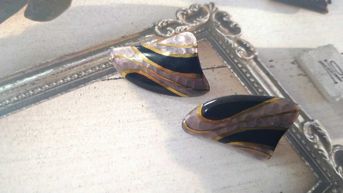 - □黒×メタリックグレー×ゴールドカラー・イヤリング□