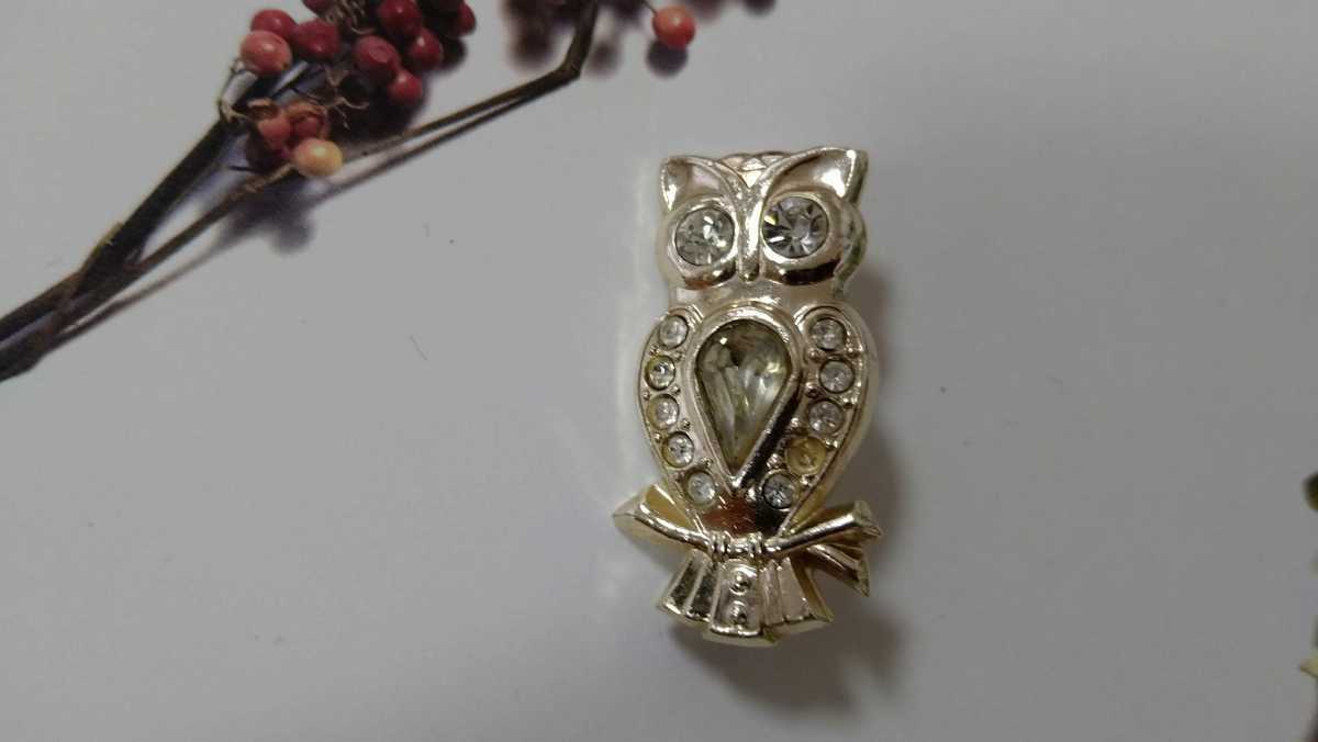 - □訳あり□シルバーカラー×ラインストーン・フクロウモチーフ・ブローチ□