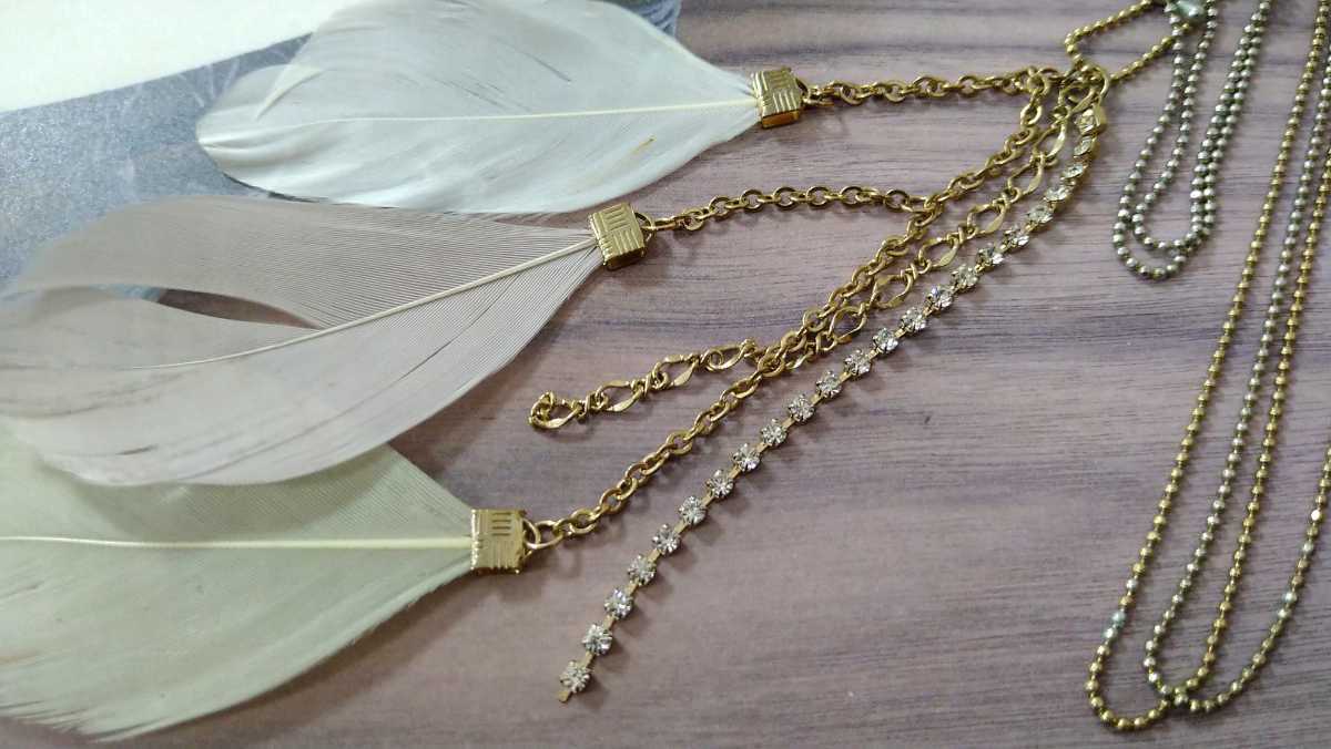 - □パステルカラー・フェザー&ラインストーン・ロングネックレス□