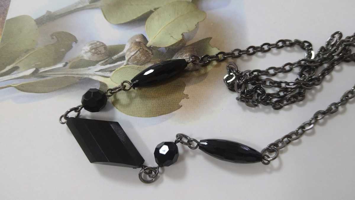 - □大きめ黒・多面カットビーズのロングネックレス□