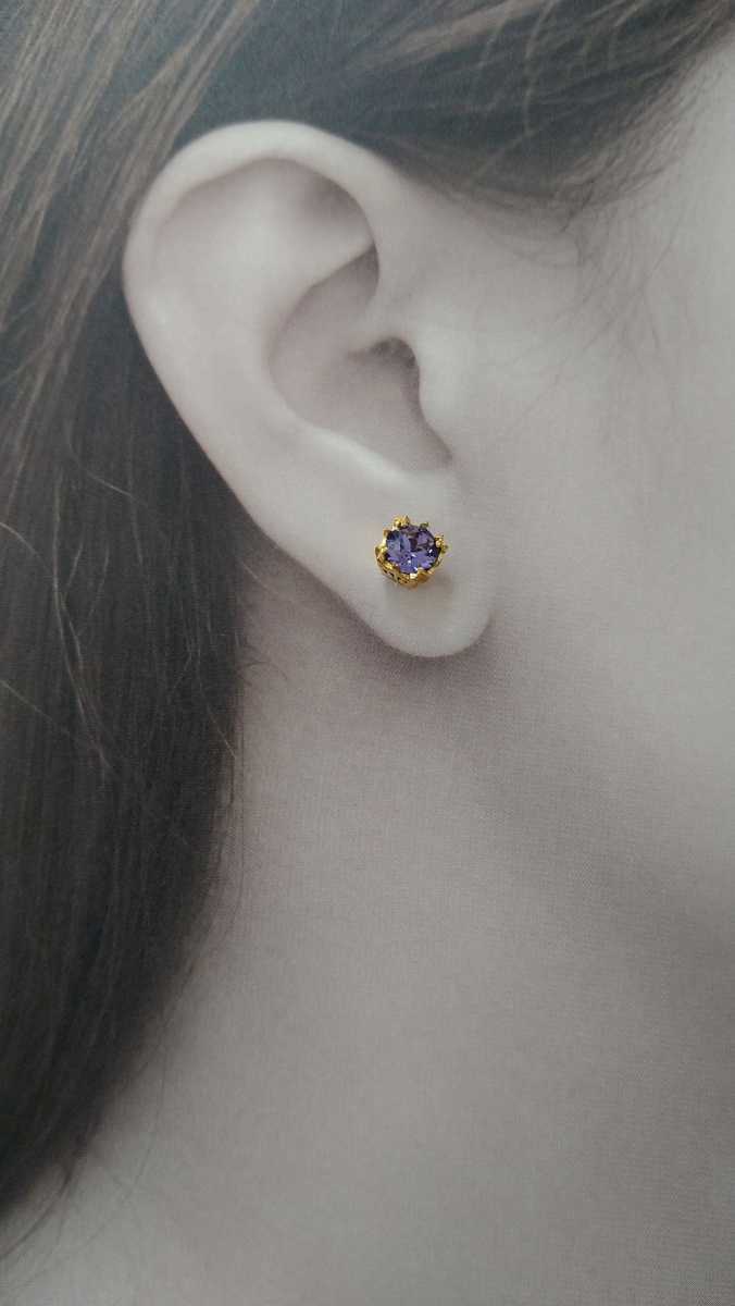 - □クリアパープルビジュー×ゴールドカラー・ピアス□