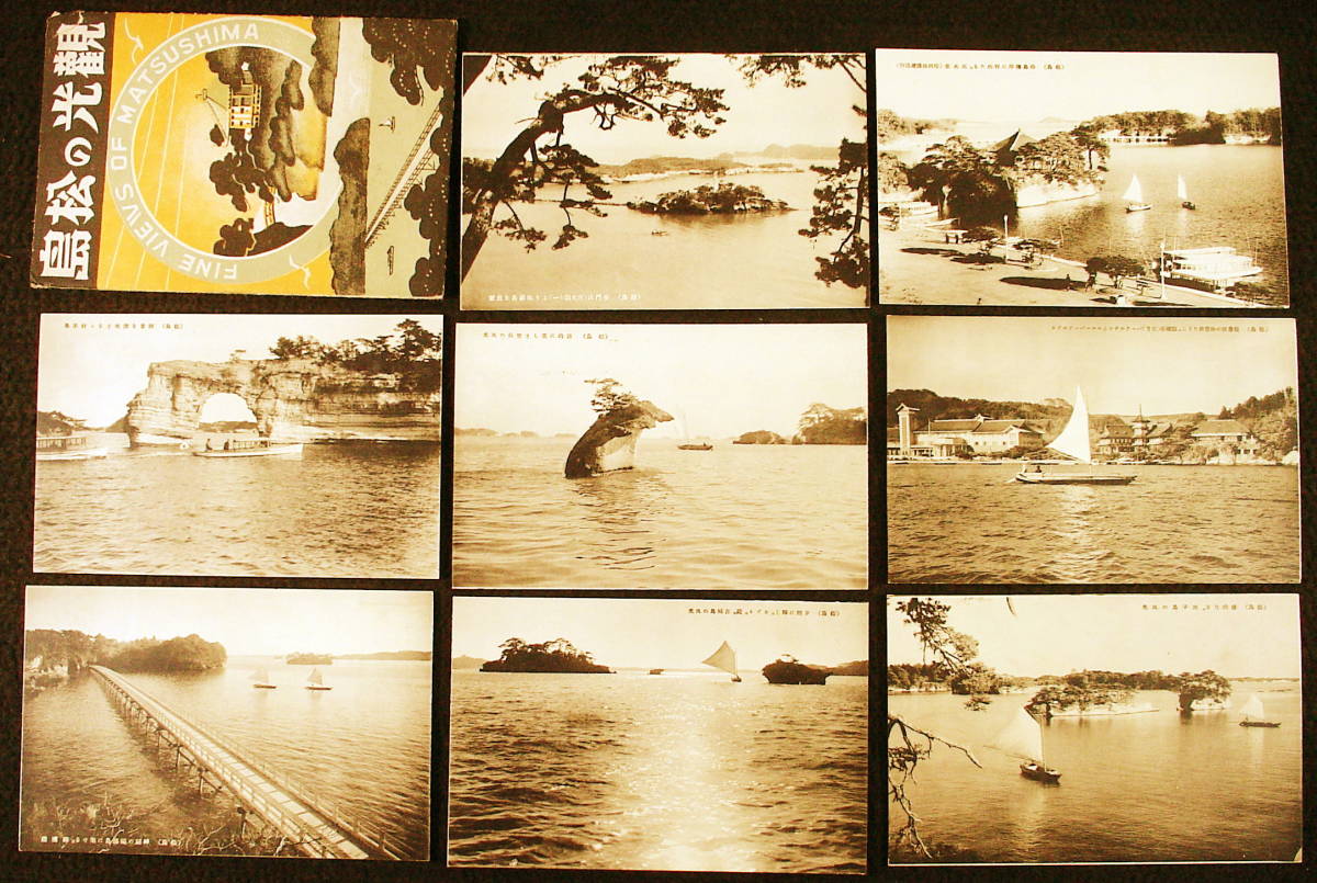 - 明治、大正、昭和前期頃の絵葉書 観光の松島 宮城県 絵葉書 八枚