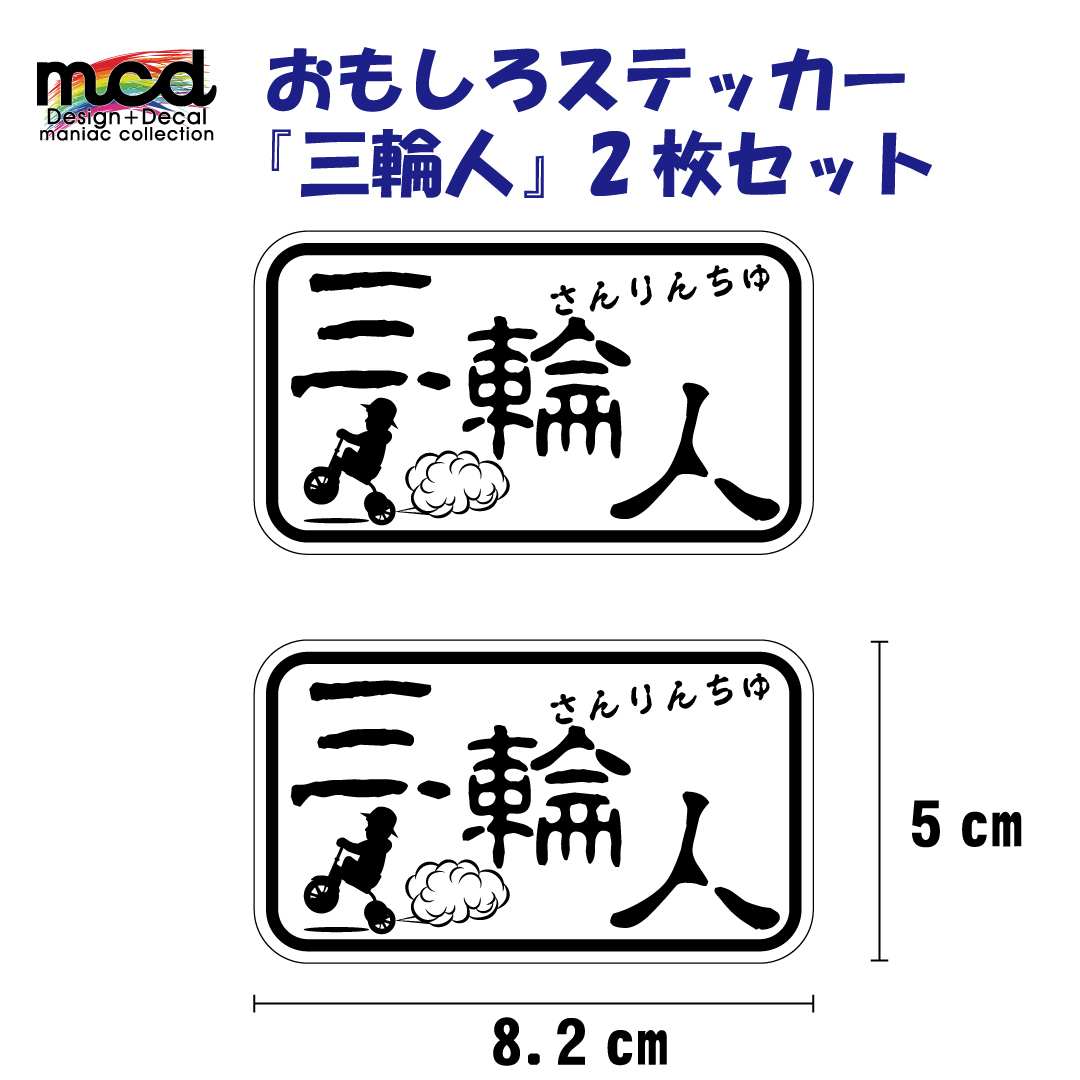 - 汎用 面白ステッカー子供用『三輪人(さんりんちゅ)』2枚セット/ヘルメット 白