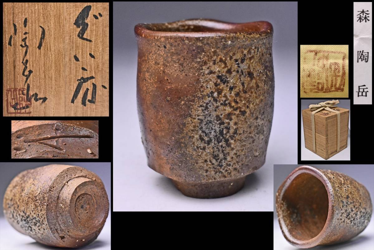 - 森陶岳 ★ 備前 ぐい呑 ★ 共箱 共布 栞 ★ 轆轤の名手による初期の希少な逸品 ★ 酒器 ★ 検 森一洋 森千晃 ★