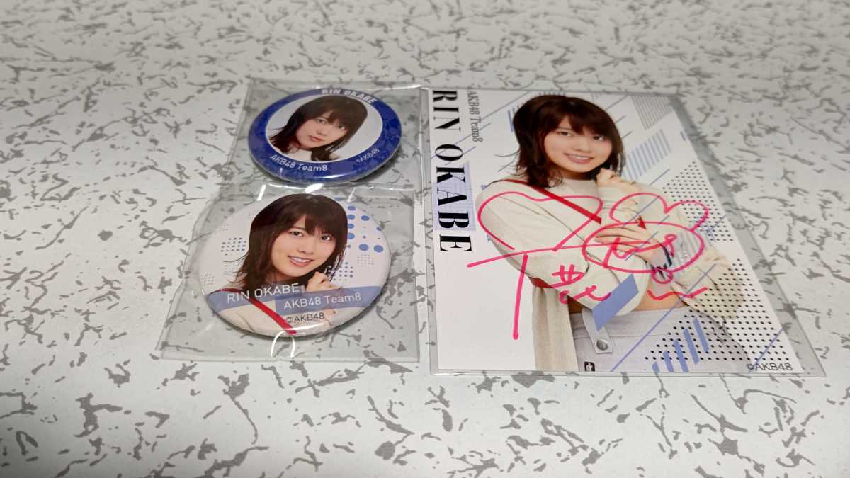 > 岡部麟 AKB48 チーム8 チアくじ2等+3等 直筆サイン+缶バッジセット