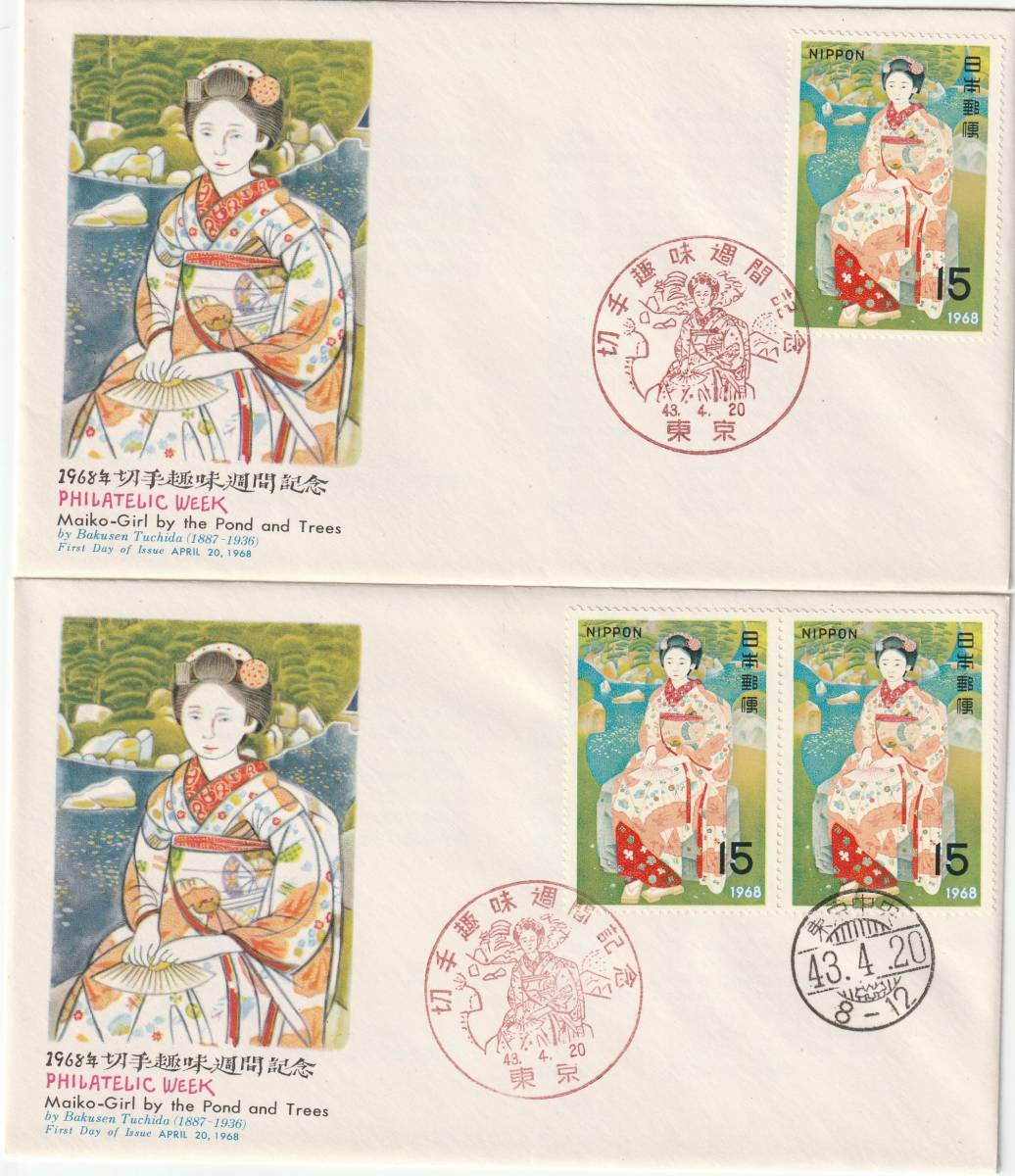 - FDC 1968年 切手趣味週間 舞妓 2通 NCC