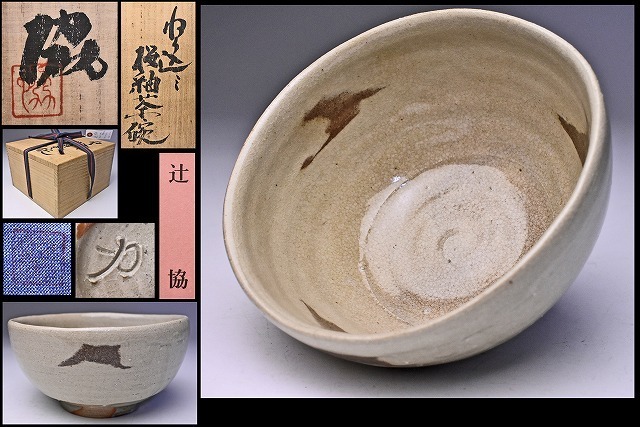 - 辻協 ★ 練り込み 桜釉 茶碗 ★ 共箱 共布 栞 ★ 師 夫: 辻清明 ★ 女流陶芸家 ★ 希少な練上技法のよる逸品 ★