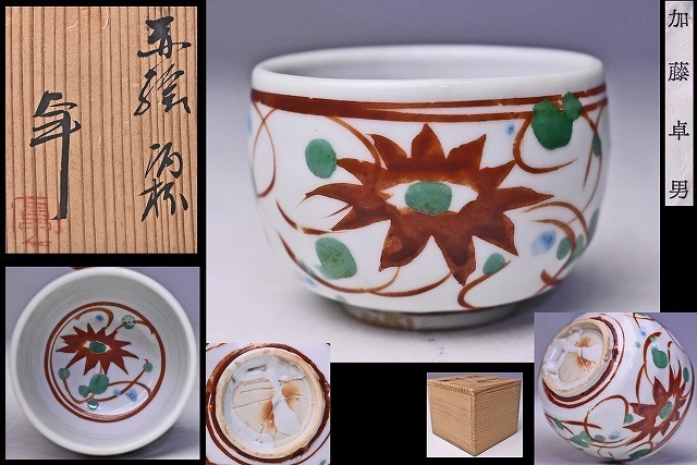 - 加藤卓男 ★ 赤絵ぐい呑 ★ 共箱栞 ★ 人間国宝 ★ 呉須赤 ★ 酒器 ★ 雅な逸品 ★