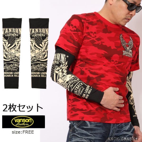 - バンソン VANSON ドライ アームシェード NVAS-2001【ブラック】ロング イーグル サポーター プリント(2)