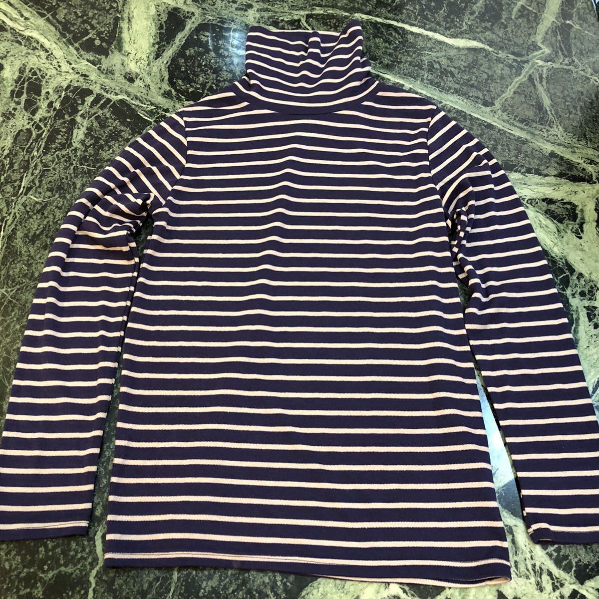 - 【美品】ボーダータートルネックセーター★長袖トップス 柔らか素材 紫 Mサイズ