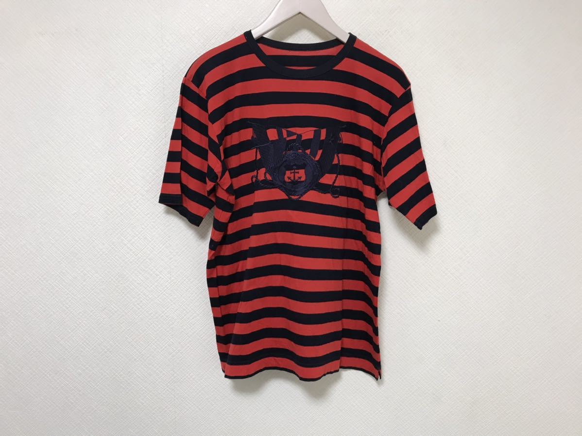 - 美品本物バオムウォレBAUMWOLLEコットンボーダー柄刺繍半袖Tシャツ旅行トラベルメンズSイタリア製レッド赤ネイビー