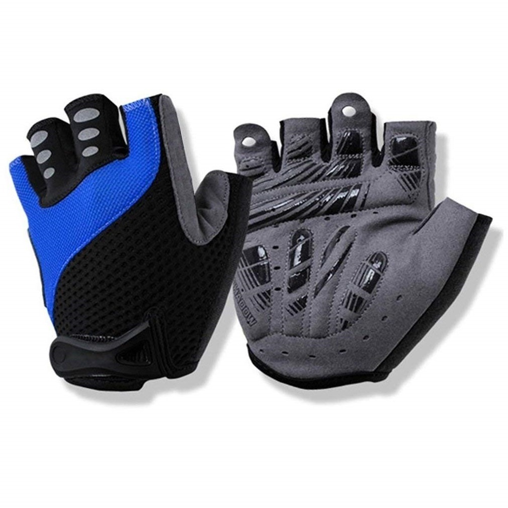 - 【送料無料】サイクリングハーフグローブ 衝撃吸収パット ドットブルー S 自転車 手袋