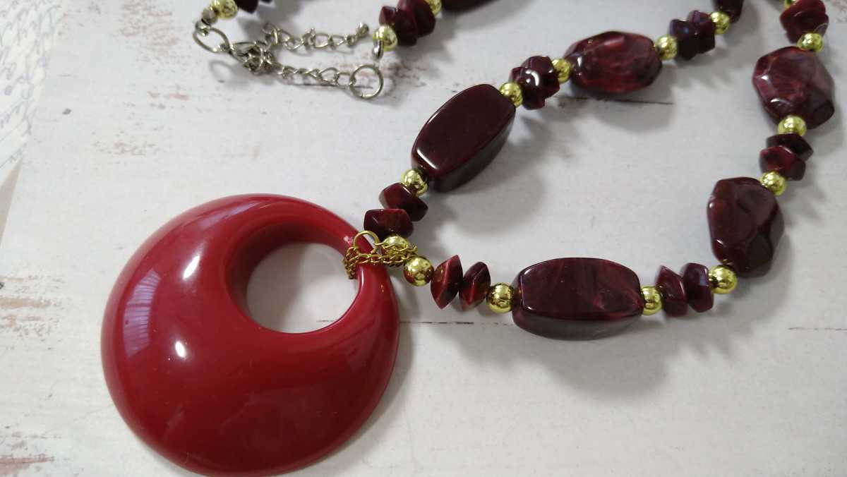 - □赤紫系リング×ゴールドカラービーズ・ネックレス□