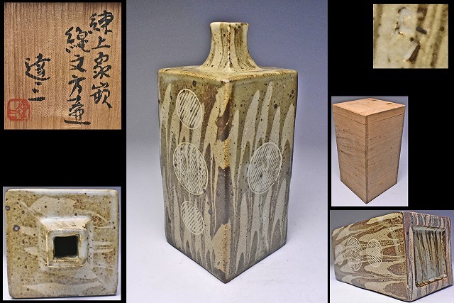 > 島岡達三 ★ 練上象嵌 縄文 方壺 ★ 共箱 ★ 人間国宝 ★ 練上に象嵌が施された上手の逸品 ★検 島岡桂 ゲルトクナッパー 松崎健 ★