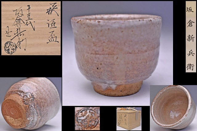 > 坂倉新兵衛 15代 ★ 萩 ぐい呑 ★ 共箱 栞 ★ 穏やかな意匠の育つのが楽しみな逸品 ★ 酒器 ★ 山口県 ★